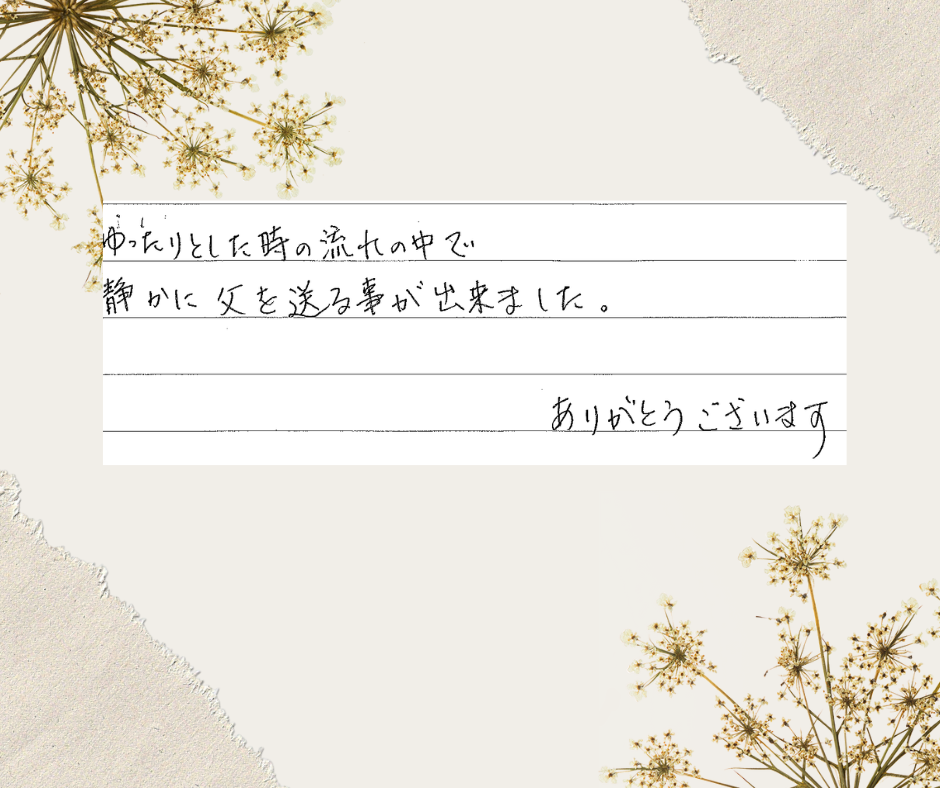 【さくら Y様】 ゆったりした時の流れの中で、静かに父を送ることが出来ました。ありがとうございました。